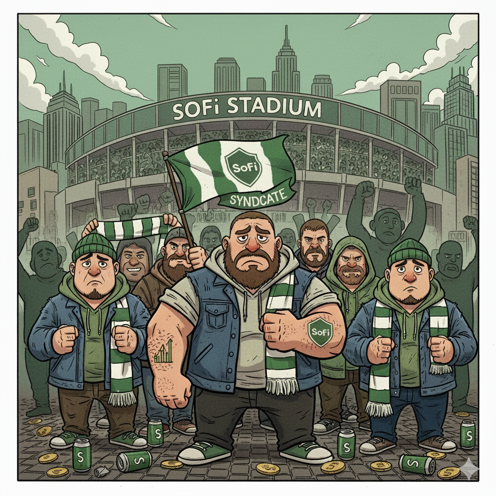 I recently talked to a member of the SoFi Syndicate. They had company tattoos on each forearm, and every hour on the hour they would rise from their chair, look west to SoFi headquarters, and shout: